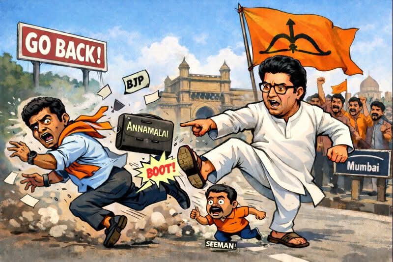 ‘..மும்பை-மராத்தியத்தின் உள்ளாட்சி தேர்தலில், மராத்தியர் அல்லாத வடநாட்டு மாநிலத்தவரை மேயராக நியமனம் செய்வோம்..’ என பாஜக மராத்திய துணைத்தலைவர் சொன்னதை ஆதரித்து, அண்ணாமலை பேசினார். இதை கண்டிக்கும் விதமாக சிவசேனையின் ராஜ்தாக்கரே பெருந்திளாக மராத்திய மக்களைத் திரட்டி கண்டனக்கூட்டம் நடத்தி, அண்ணாமலையை கடுமையாக விமர்சித்தார். இந்நிலையில் அண்ணாமலைக்கு ஆதரவாக சீமான் குரல் கொடுத்து, அண்ணாமலையை தமிழர்கள் ஆதரிக்க வேண்டுமென சொல்வது சீமானின் துரோகத்தனத்தை அம்பலப்படுத்தியுள்ளது.